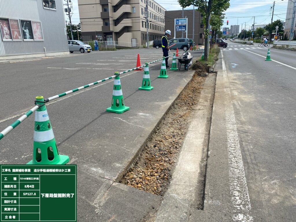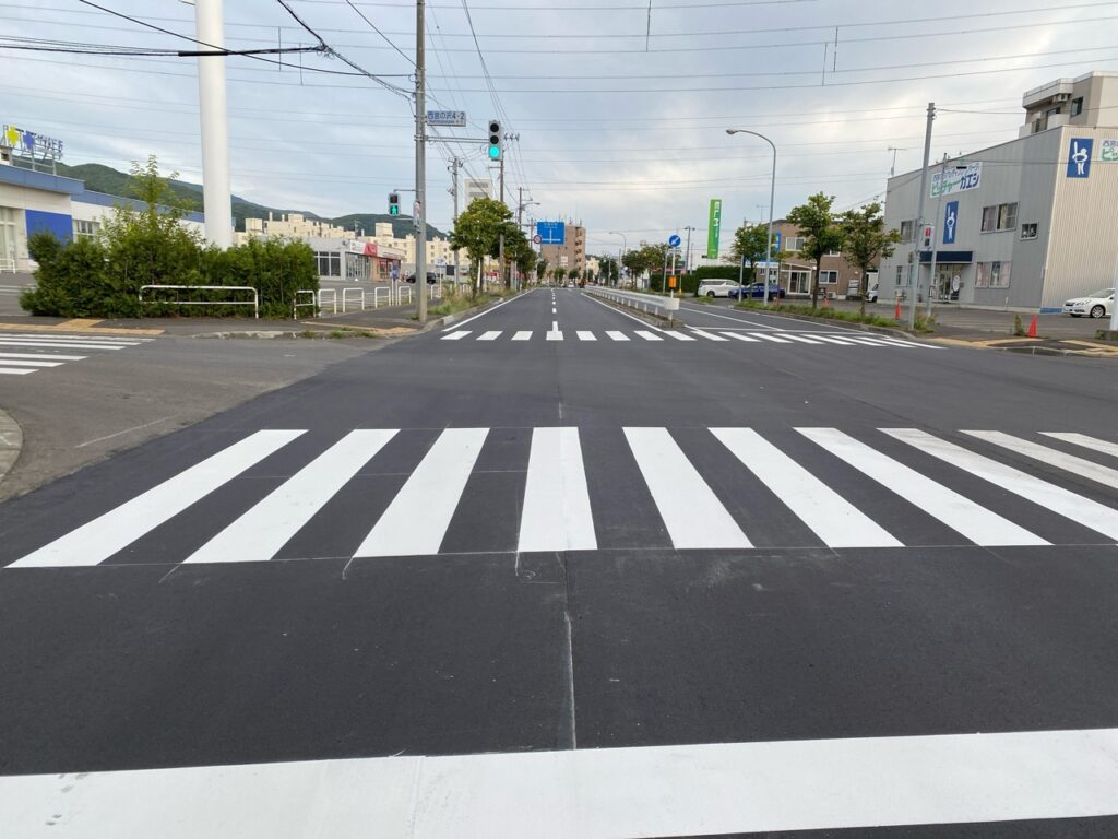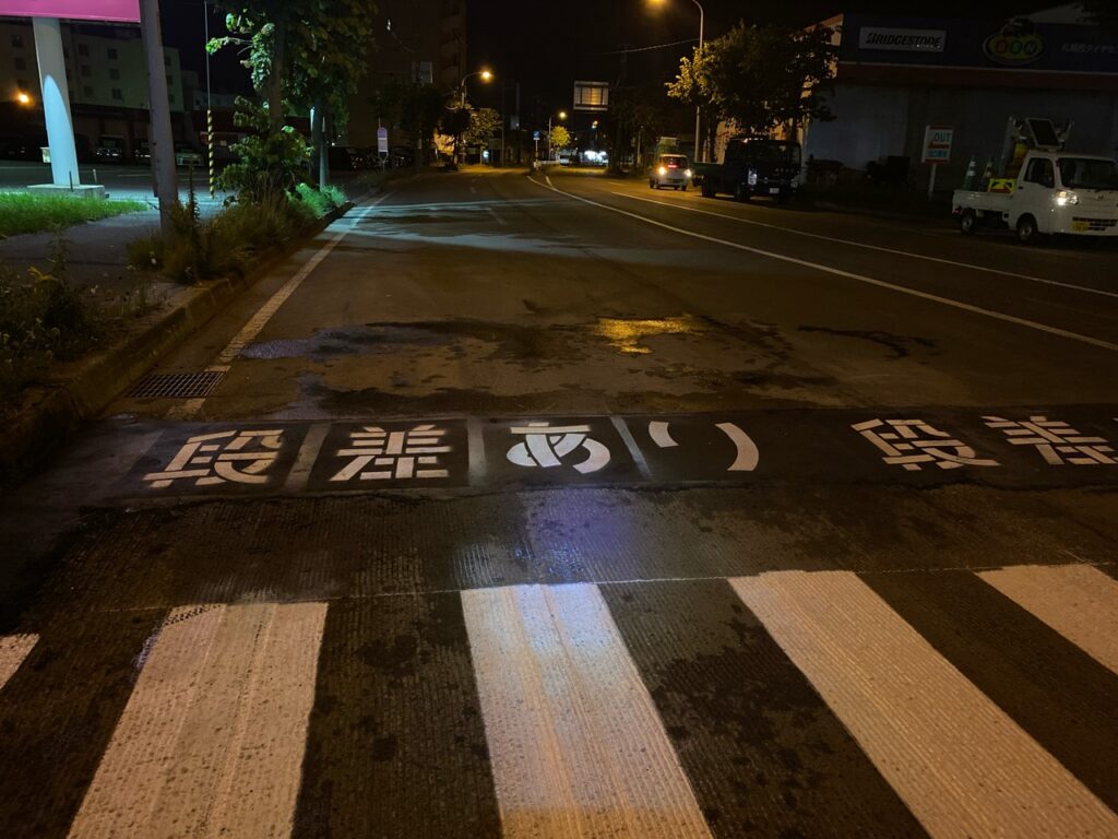 切削完了後から舗装を行うまで2週間程度間隔があきますので、走行されるドライバーの皆様には視認されやすいよう看板の設置や道路に表示を行っていますので、安全に走行していただきますよう何卒ご協力お願いいたします。