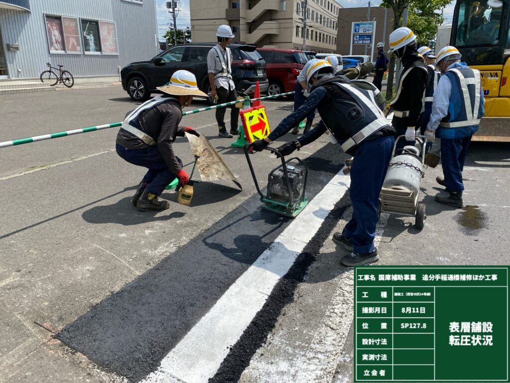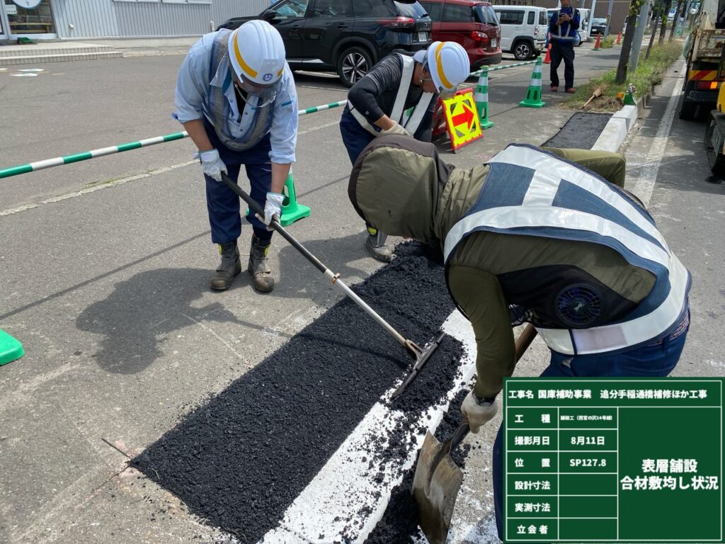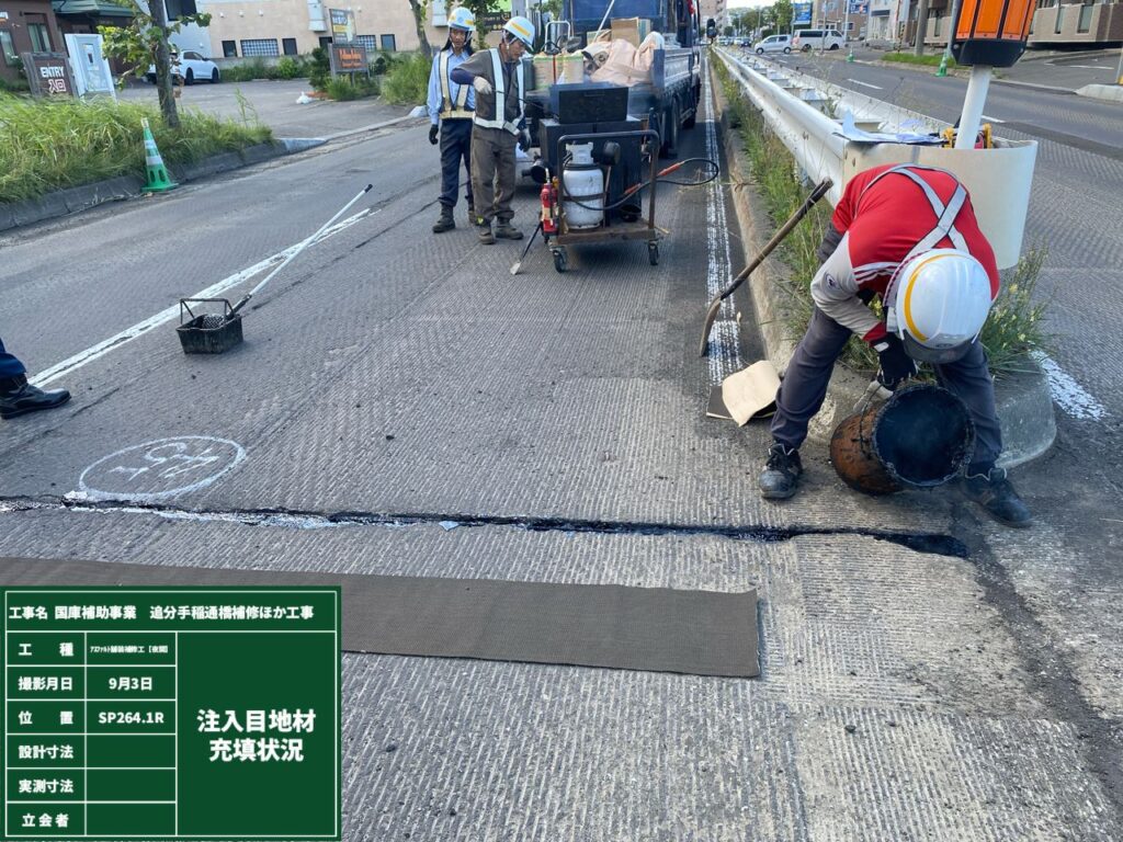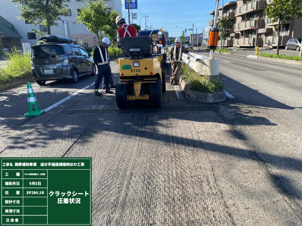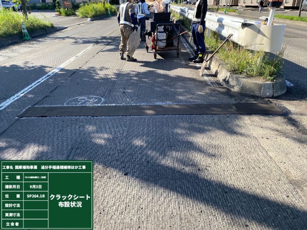 前回までは路面切削が完了いたしまして、路面のクラック補修を行っていきます。