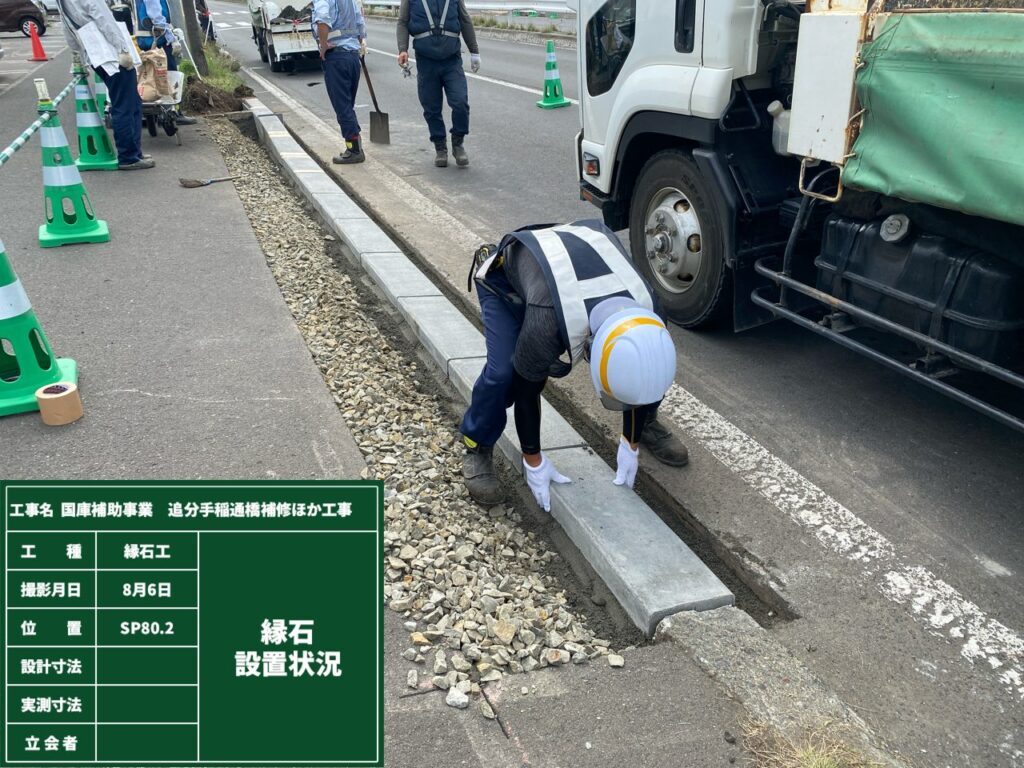 経年劣化による損傷や破損した縁石を部分的に撤去し、新しい縁石を設置しています。