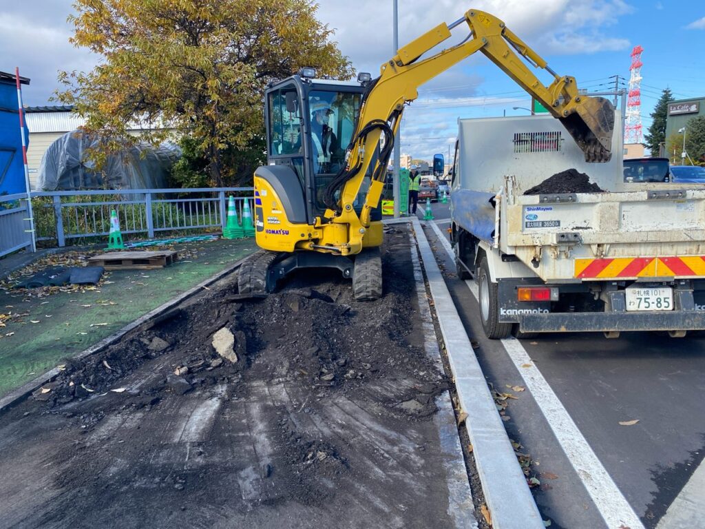 切削完了後から舗装を行うまで2週間程度間隔があきますので、走行されるドライバーの皆様には視認されやすいよう看板の設置や道路に表示を行っていますので、安全に走行していただきますよう何卒ご協力お願いいたします。