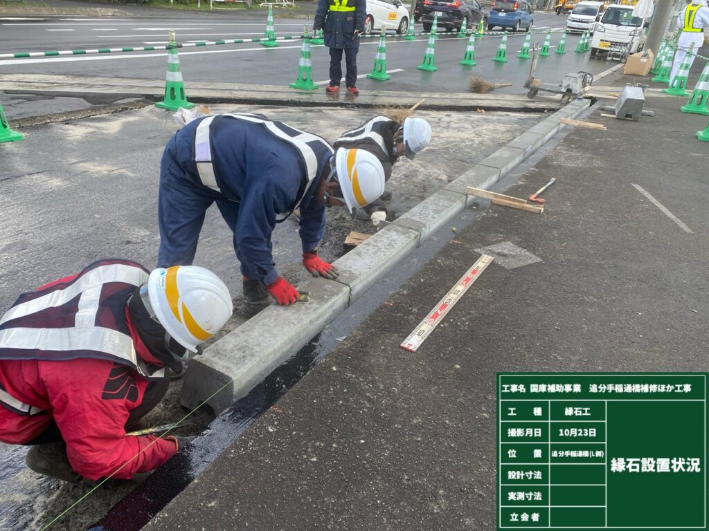経年劣化による損傷や破損した縁石を部分的に撤去し、新しい縁石を設置しています。
