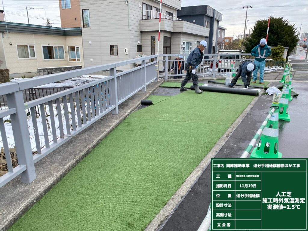 11月は追分手稲通橋の歩道の橋面防水と人工芝の設置を行う予定です。もし、お時間ありましたらcheckしてみてください。それではまた✋