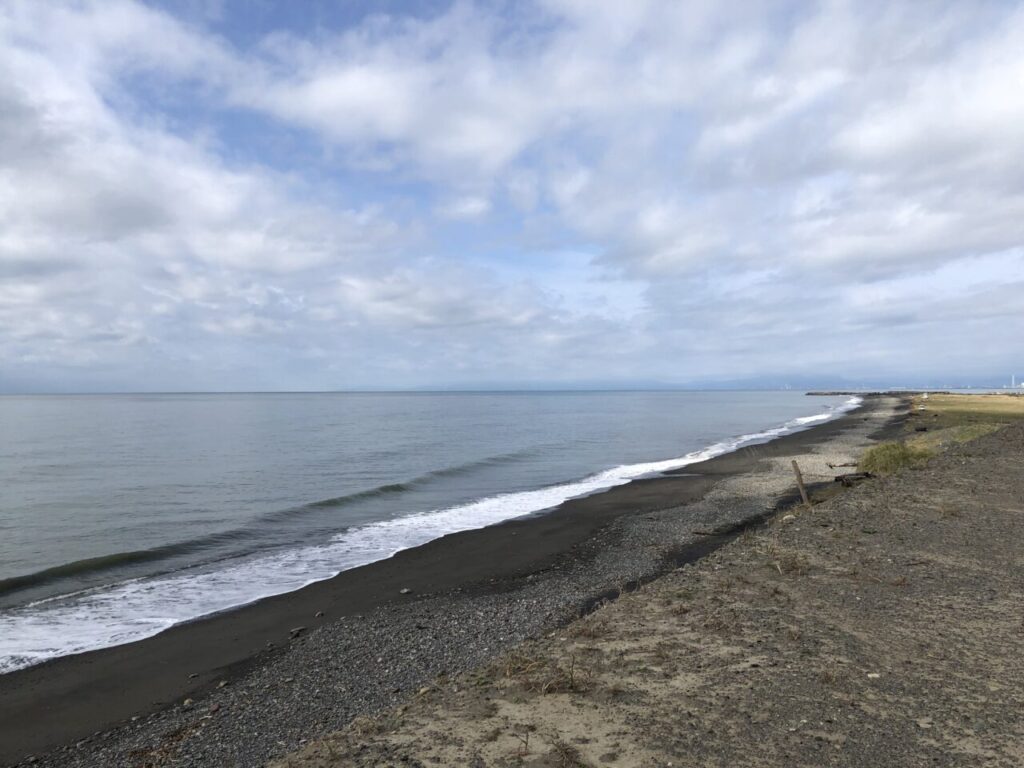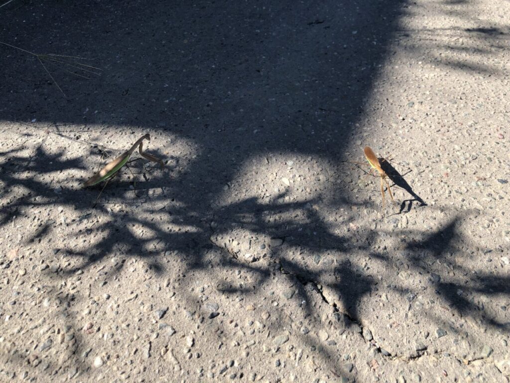 めっちゃカマキリいる。土取場の目の前は海 鮭釣れるかな では✋