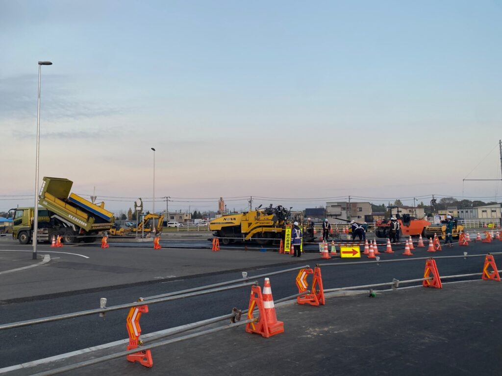 当現場は高校生の通学路になっているのですが、舗設の翌日に綺麗になった舗装を見て「走りやすーい!」と叫んで帰っている高校生がいました。馬鹿正直な感想にこちらがちょっと恥ずかしくなりましたが、とても嬉しくもなりました。この仕事の良さが詰まっている瞬間だったかもしれません✌️